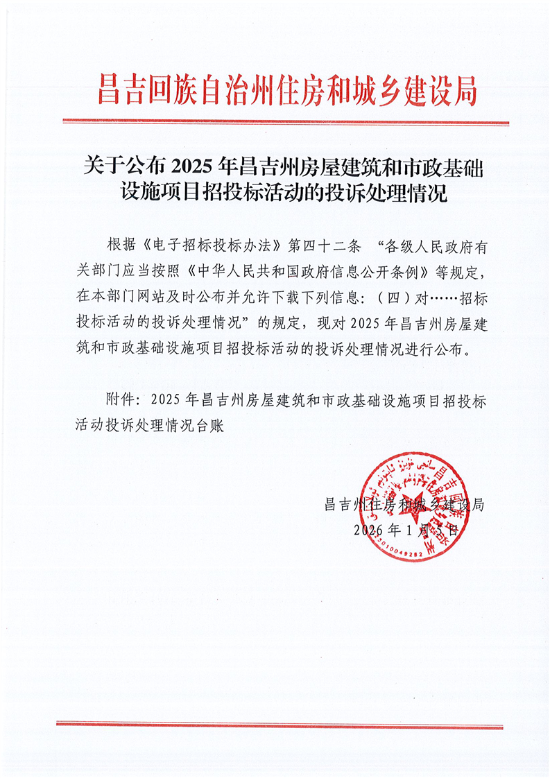 关于公布2025年昌吉州房屋建筑和市政基础设施项目招投标活动的投诉处理情况